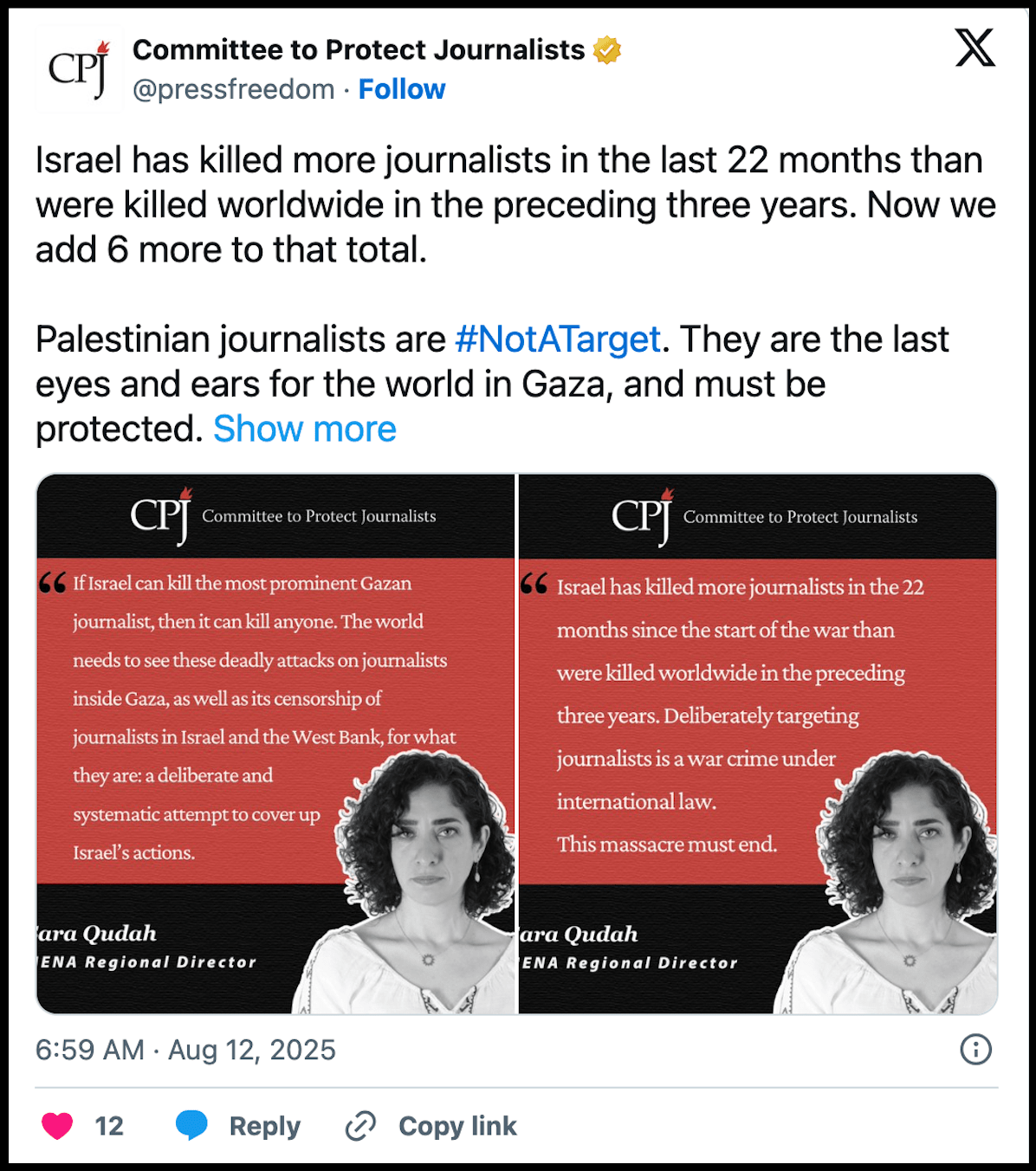 Rather, it is to assert the importance of the fundamental right of all – the right to information. That applies as much in Gaza as it does in Ukraine, or Russia, or Sudan, or any other crisis where the public needs accurate, reliable information to support good policy.![]()