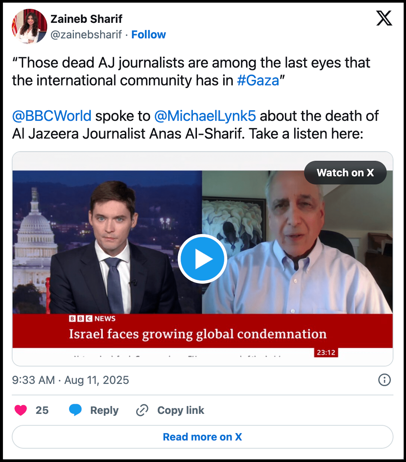 Calling for foreign journalists to be let into Gaza is not to deny the extraordinary sacrifice of Anas al-Sharif or any of the other Palestinians who have been killed while doing their jobs.