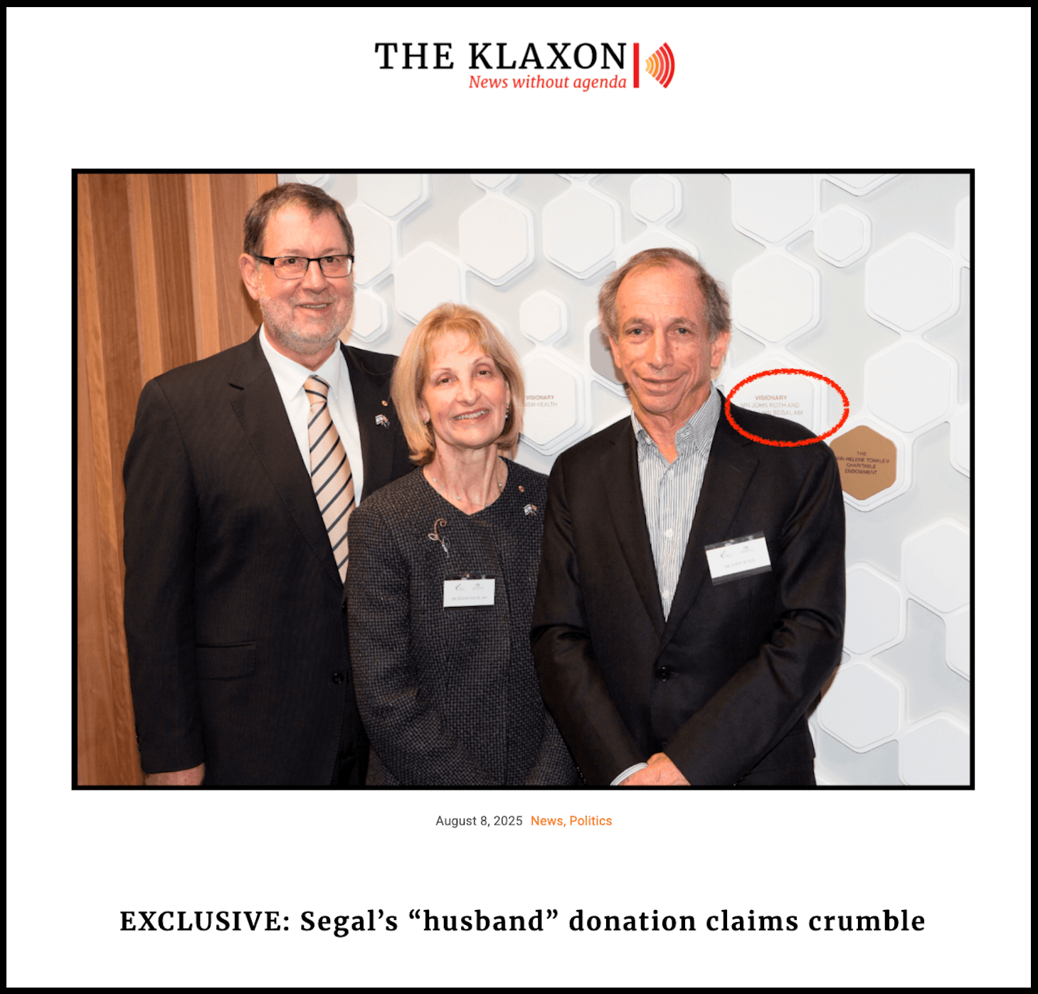 The Klaxon’s expose came two days after Segal — flanked by the Prime Minister and Bourke — called for sweeping new speech laws.