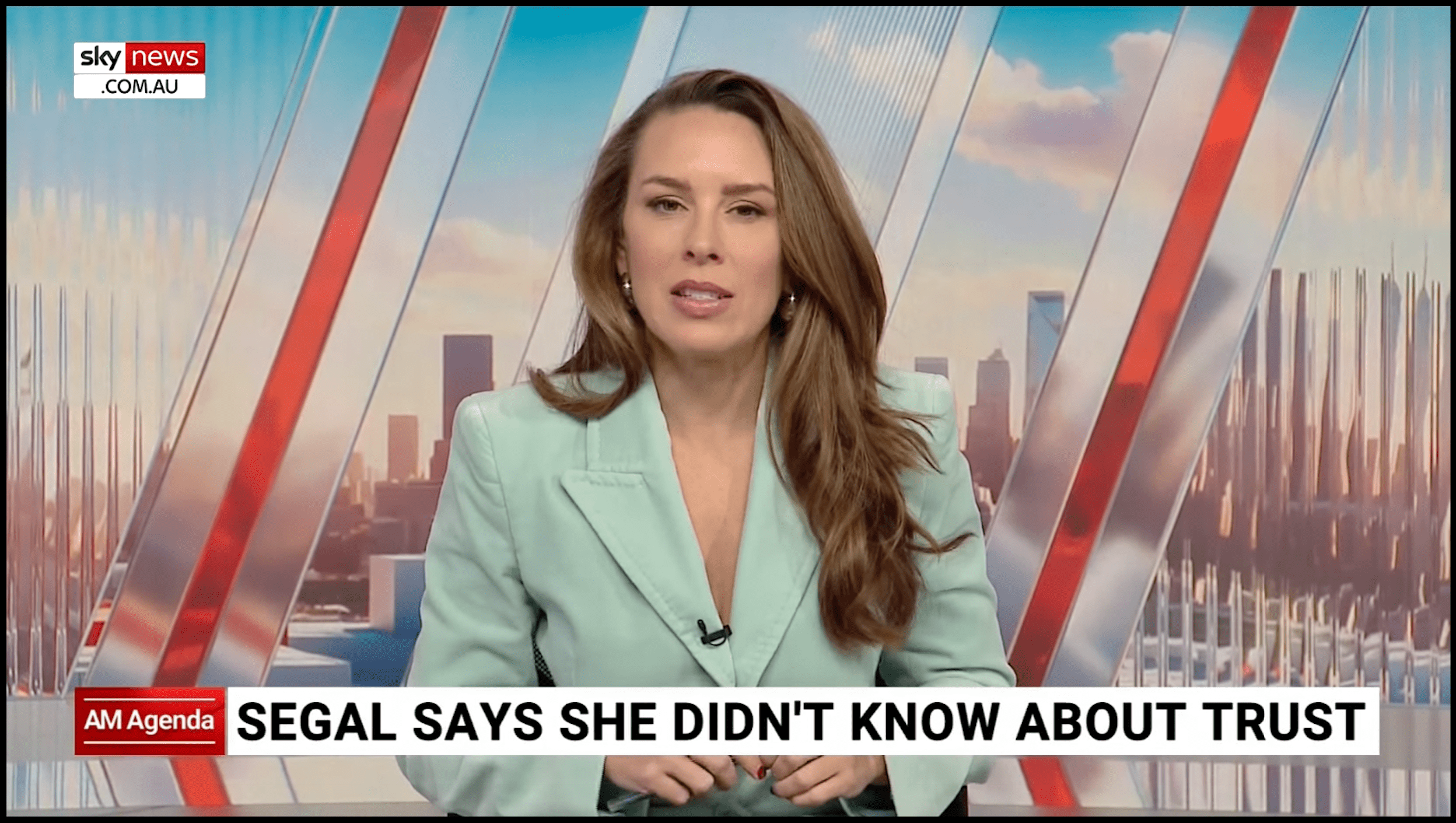 The following day, on July 15, Sky News ran a segment, which featured prominent banners, including “Segal Says she didn’t know about trust” and “Segal says she didn’t know about payment”.